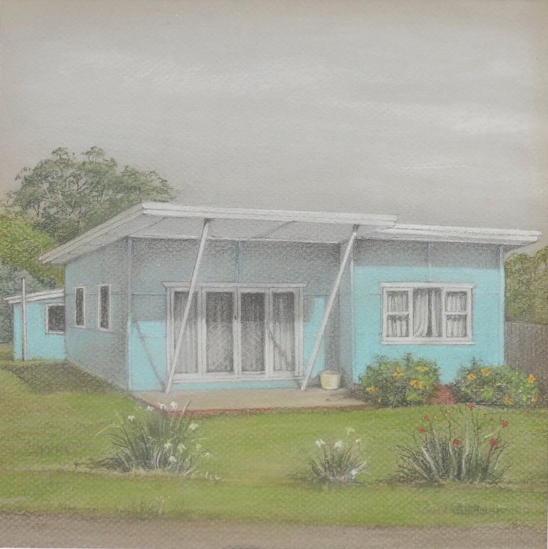 Luanne Mitchelmore is a Sydney-based artist with a background in art education. Luanne works with various drawing materials, favouring pastel pencil, graphite, and charcoal. Her interest is in landscape, particularly urban scenes she holds a connection to. She seeks out old houses when she travels to coastal and country towns. Luanne photographs and draws the houses, capturing their colours with her chalky pastel pencils. Luanne admires the small scale of the buildings, their bright colours and the textures of their gardens. Many of Australia’s old houses and places are disappearing. Luanne’s drawings are a way of celebrating and preserving them. She has been recognised in various local and national art prizes.